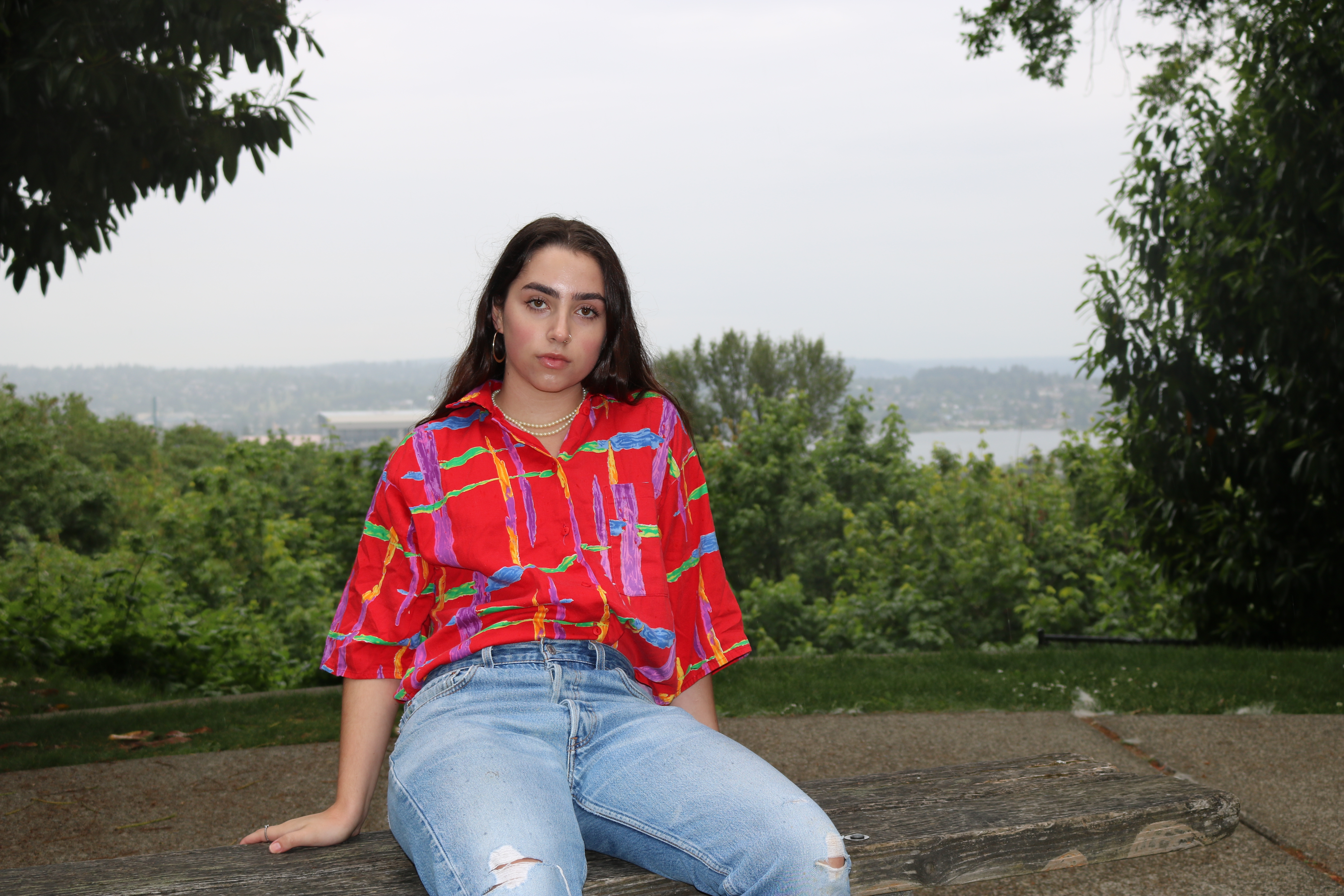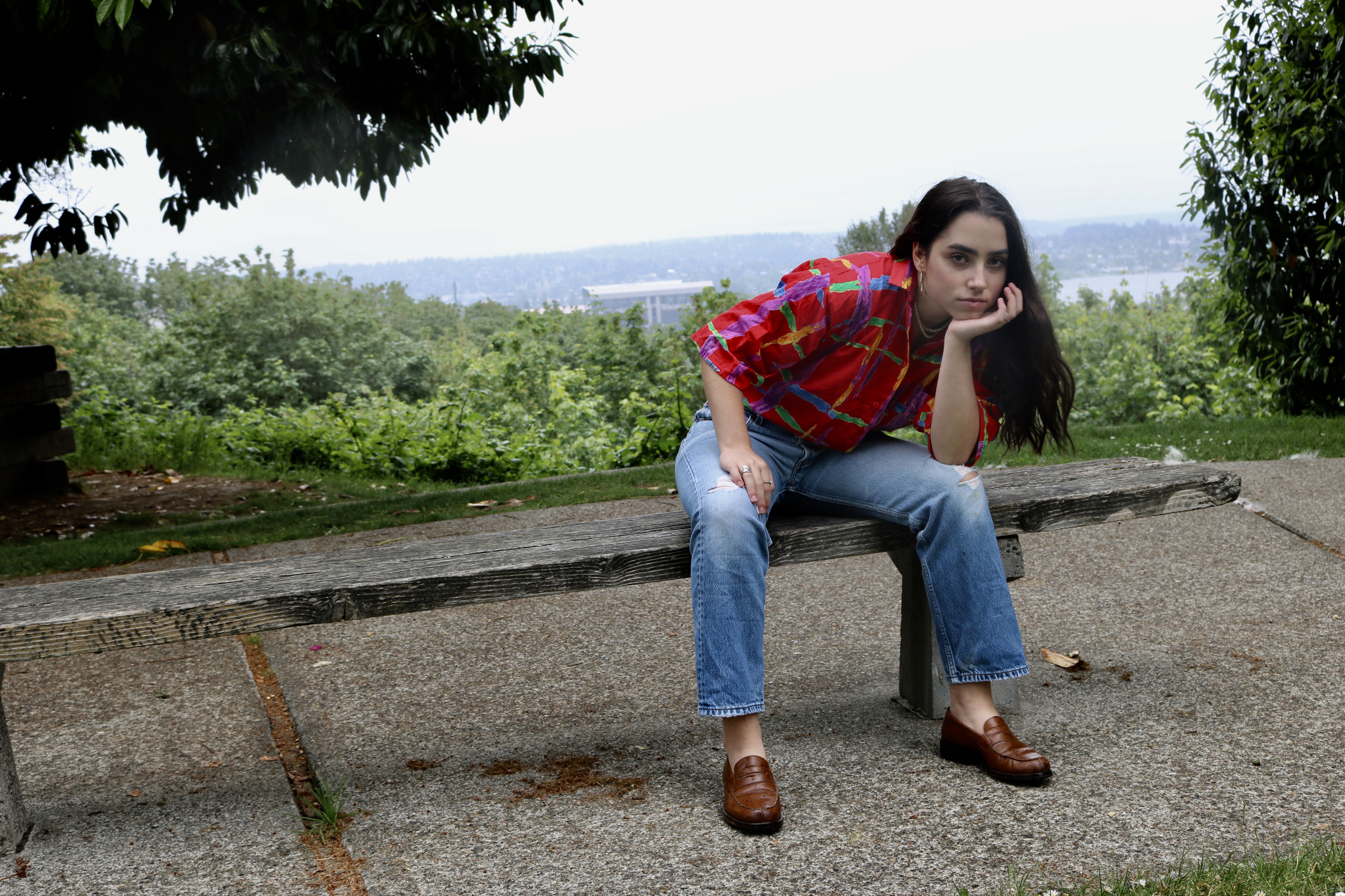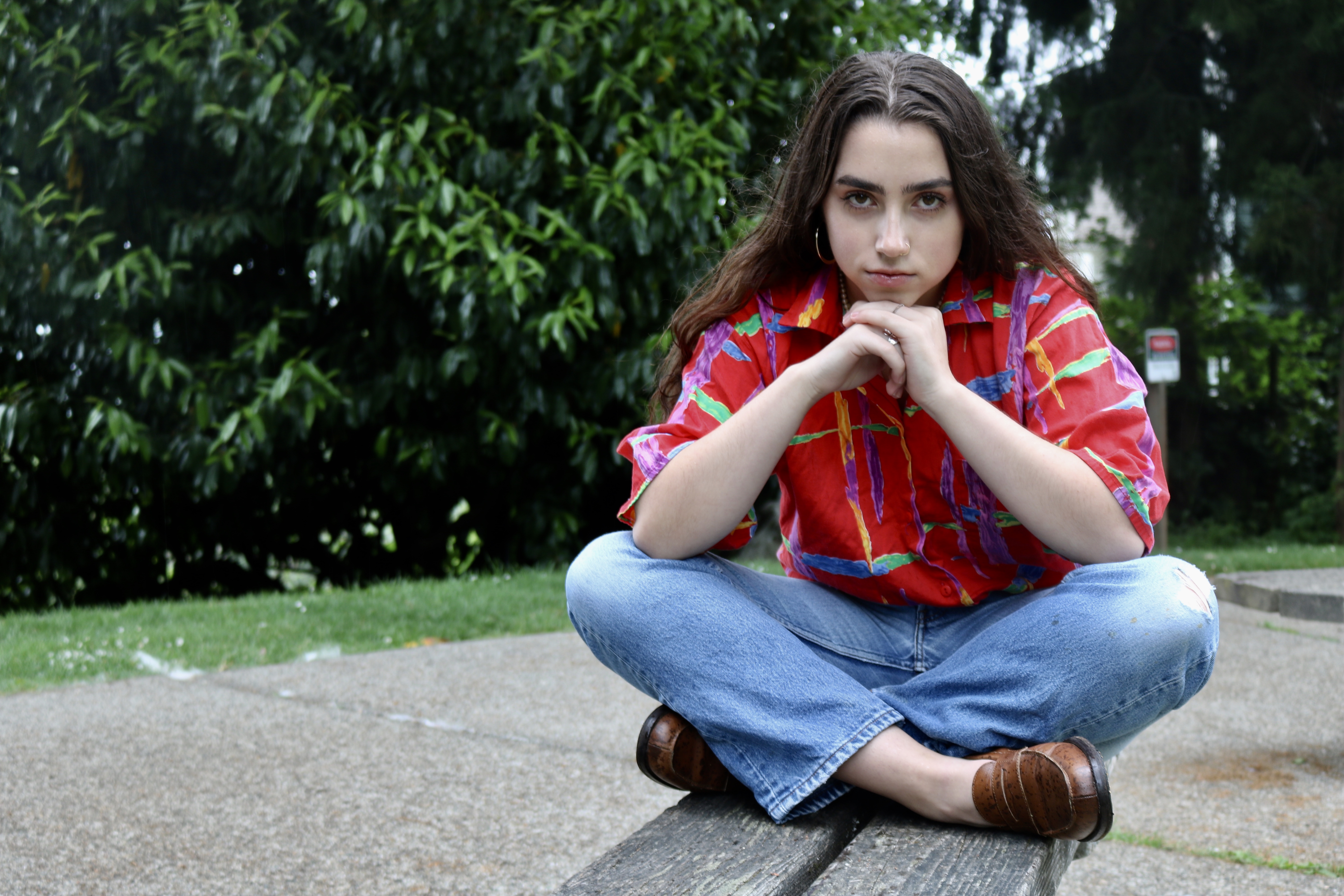 Dressed in two almost completely thrifted outfits, Olivia showed off her iconic brows and intense smolder. For this post, we decided to go back to the roots of the blog and focus on a shoot, while also including an article about Olivia. Olivia Kurofsky is a local Seattleite with a passion for singing and interest in modeling. She is not signed to any particular agency (although we have no doubts she totally could be) and explained that she models just for fun. She wrote and co-produced her first EP at the age of 15, and at 17 years old she performed at venues including the Showbox, Vera Project, Chop Suey, The Moore, Town Hall, and the Royal Room. She is working to release a full-length album this fall to showcase her vast development as a songwriter and vocalist. Olivia has also been a part of various projects such as films about local artists, fashion blogs, her school’s house band, and teen artist showcases. She hopes to land a marketing/social media internship for KEXP this summer to supplement her retail job and, of course, the infamous “struggling artist” income.
