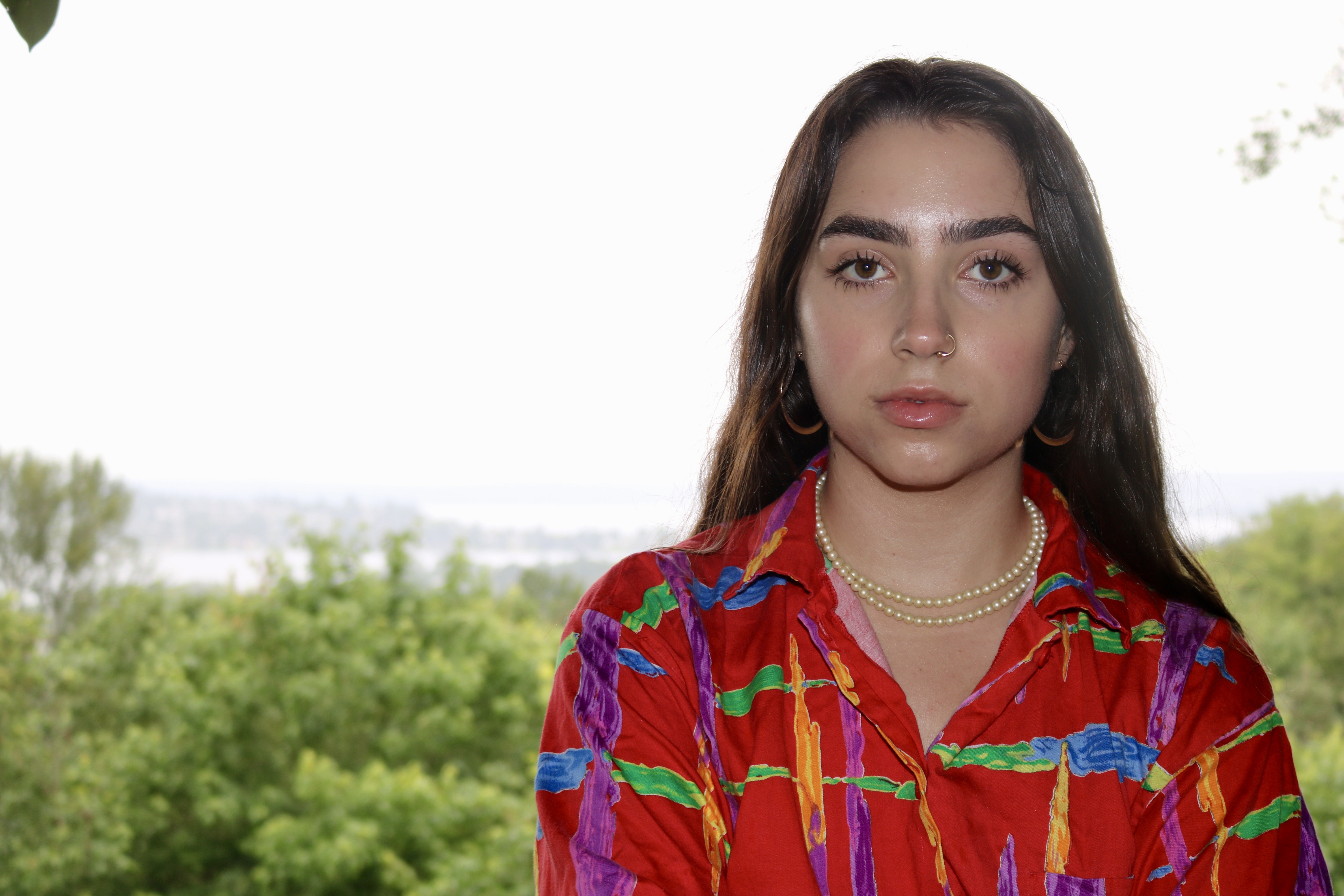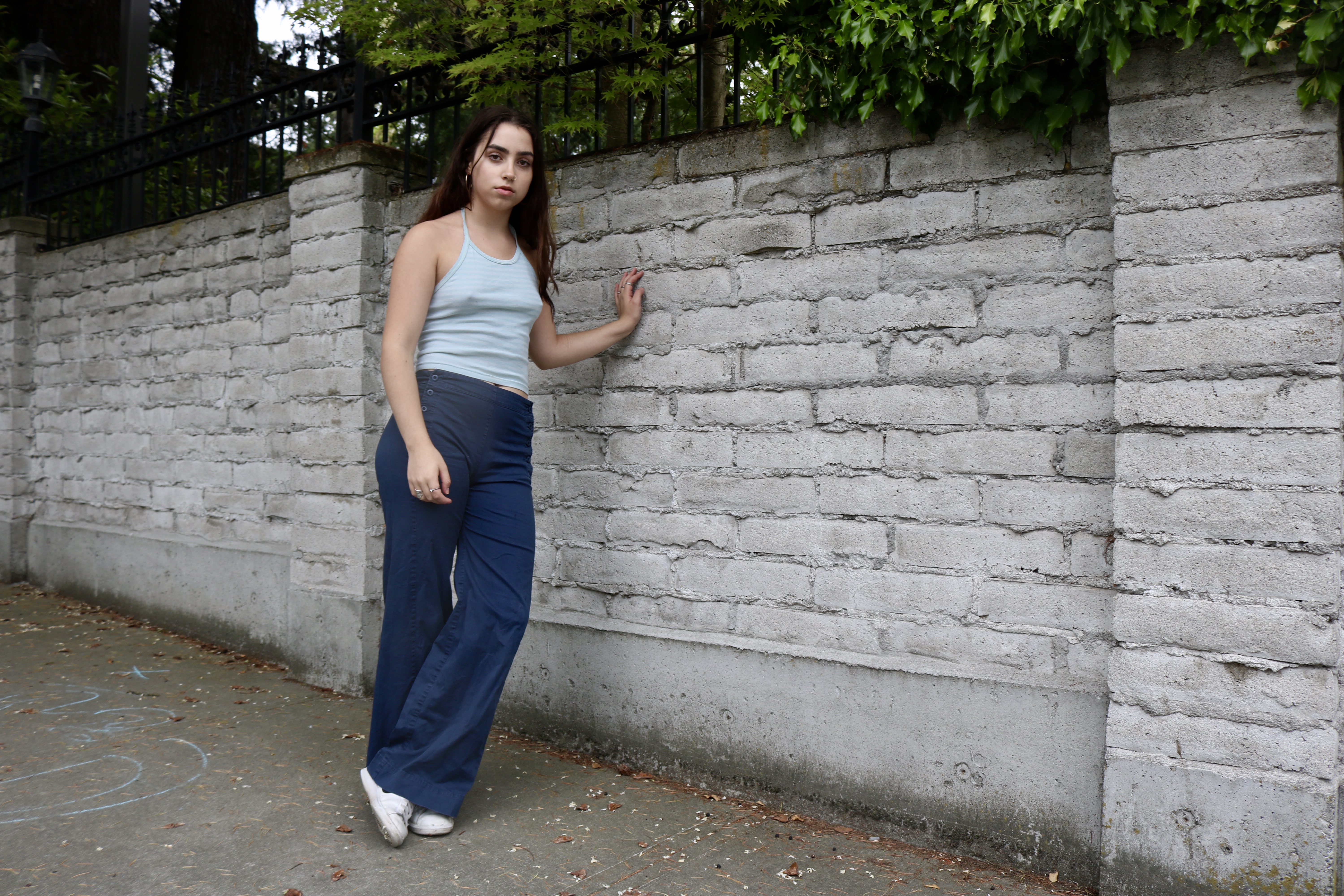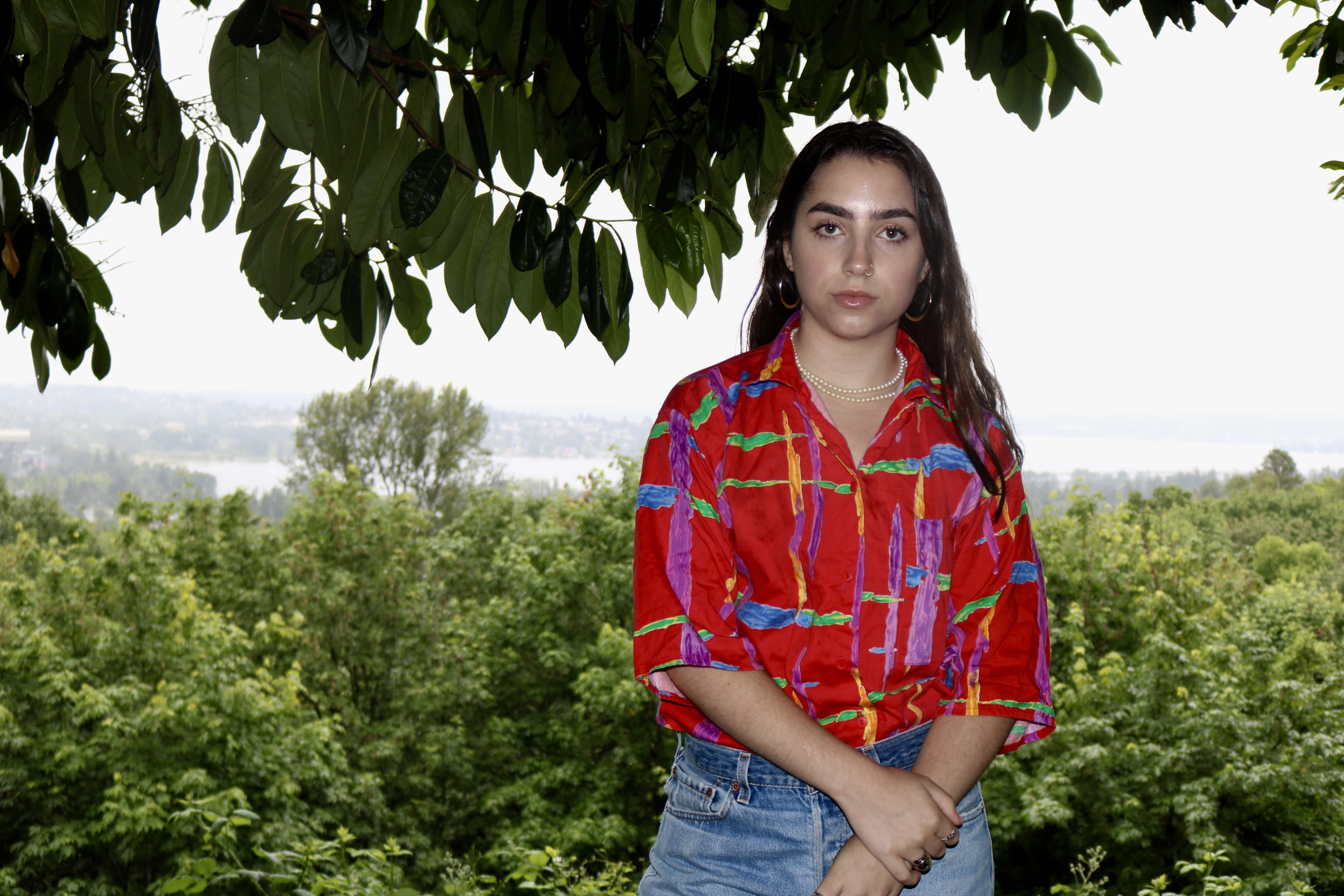 Dressed in two almost completely thrifted outfits, Olivia showed off her iconic brows and intense smolder. For this post, we decided to go back to the roots of the blog and focus on a shoot, while also including an article about Olivia. Olivia Kurofsky is a local Seattleite with a passion for singing and interest in modeling. She is not signed to any particular agency (although we have no doubts she totally could be) and explained that she models just for fun. She wrote and co-produced her first EP at the age of 15, and at 17 years old she performed at venues including the Showbox, Vera Project, Chop Suey, The Moore, Town Hall, and the Royal Room. She is working to release a full-length album this fall to showcase her vast development as a songwriter and vocalist. Olivia has also been a part of various projects such as films about local artists, fashion blogs, her school’s house band, and teen artist showcases. She hopes to land a marketing/social media internship for KEXP this summer to supplement her retail job and, of course, the infamous “struggling artist” income.